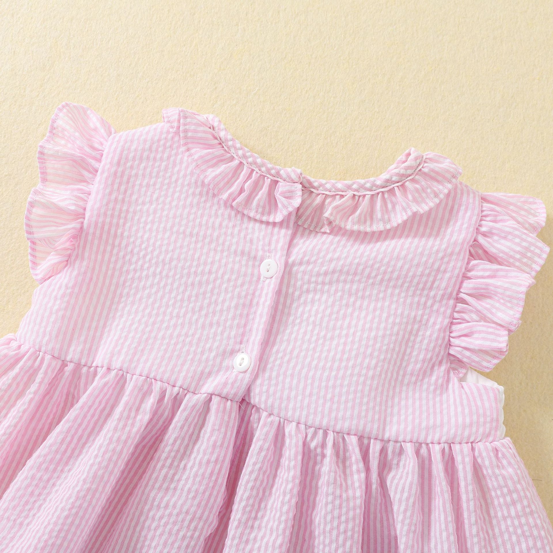 A charming pink smocked dress with delicate bunny embroidery and ruffled sleeves, crafted in lightweight cotton seersucker. Soft, airy, and gentle on skin – ideal for warm days, playtime, and special moments.