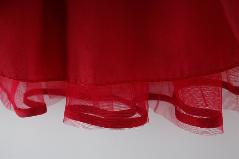 Make your little one shine in our Crimson Pearl Bow Tulle Dress, a perfect blend of elegance and playfulness. Crafted in a rich wine-red hue, this dress features flutter sleeves and a soft layered tulle skirt that flows beautifully. The delicate pearl-embellished bows add a touch of sophistication, making it an ideal choice for birthdays, weddings, festive events, or holiday photoshoots.