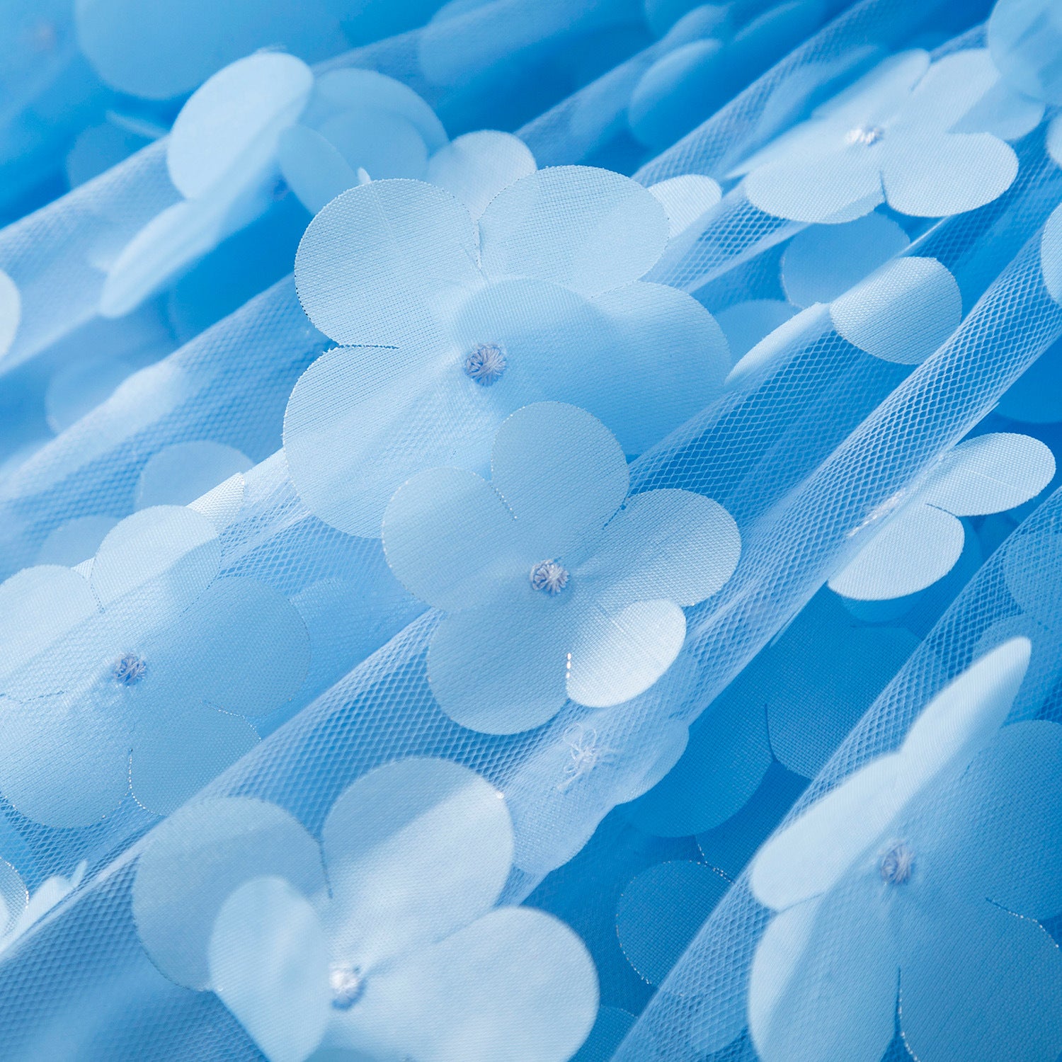 This charming dress is perfect for little princesses! Featuring soft flutter sleeves and a knit bodice, it combines comfort with elegance. The highlight of the dress is the layered floral tulle skirt adorned with delicate 3D flower appliqués, creating a dreamy and whimsical look. A satin bow at the waist adds a touch of sophistication, making it ideal for special occasions, birthdays, or photo shoots.