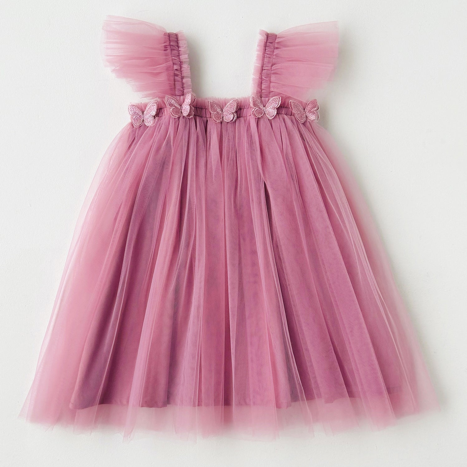 Embrace the magic of childhood with our Whimsical Butterfly Tulle Dress. This enchanting piece features delicate tulle layers that flow gracefully, creating a dreamy silhouette perfect for any special occasion. The dress is adorned with charming butterfly appliqués along the bodice, adding a touch of whimsy and elegance.